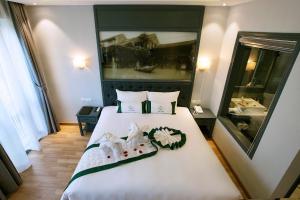 The accommodation includes air-conditioned rooms with soundproof walls, equipped with flat-screen TVs, minibars, wardrobes, and desks. Guest bathrooms have walk-in showers or baths with bidets and come stocked with free toiletries and bathrobes. Some rooms provide terraces overlooking the garden or pool area while family rooms offer garden views, all units include either city or inner courtyard windows. Wooden or parquet flooring complements non-smoking rooms accessible via elevator.